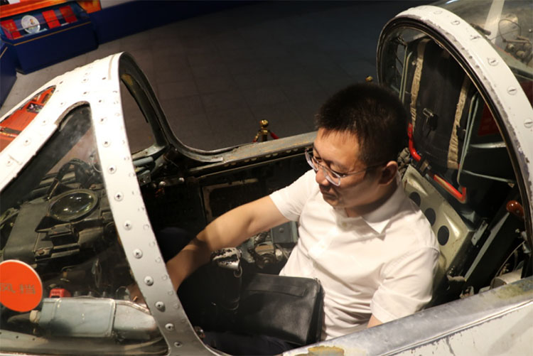 黃總在殲 6 型飛機(jī)座艙內(nèi)體驗殲擊機(jī)飛行員的工作環(huán)境