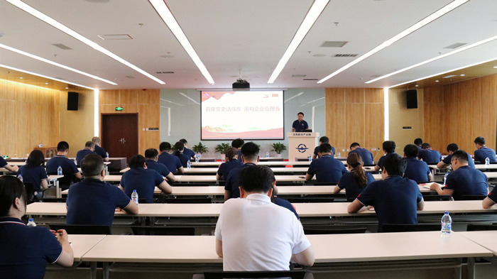 7月14日,集團(tuán)黨委書(shū)記、董事長(zhǎng)、總經(jīng)理吳波以《百年黨史話(huà)輝煌 國(guó)有企業(yè)應(yīng)擔(dān)當(dāng)》為主題,為集團(tuán)全體黨員講授專(zhuān)題黨課。