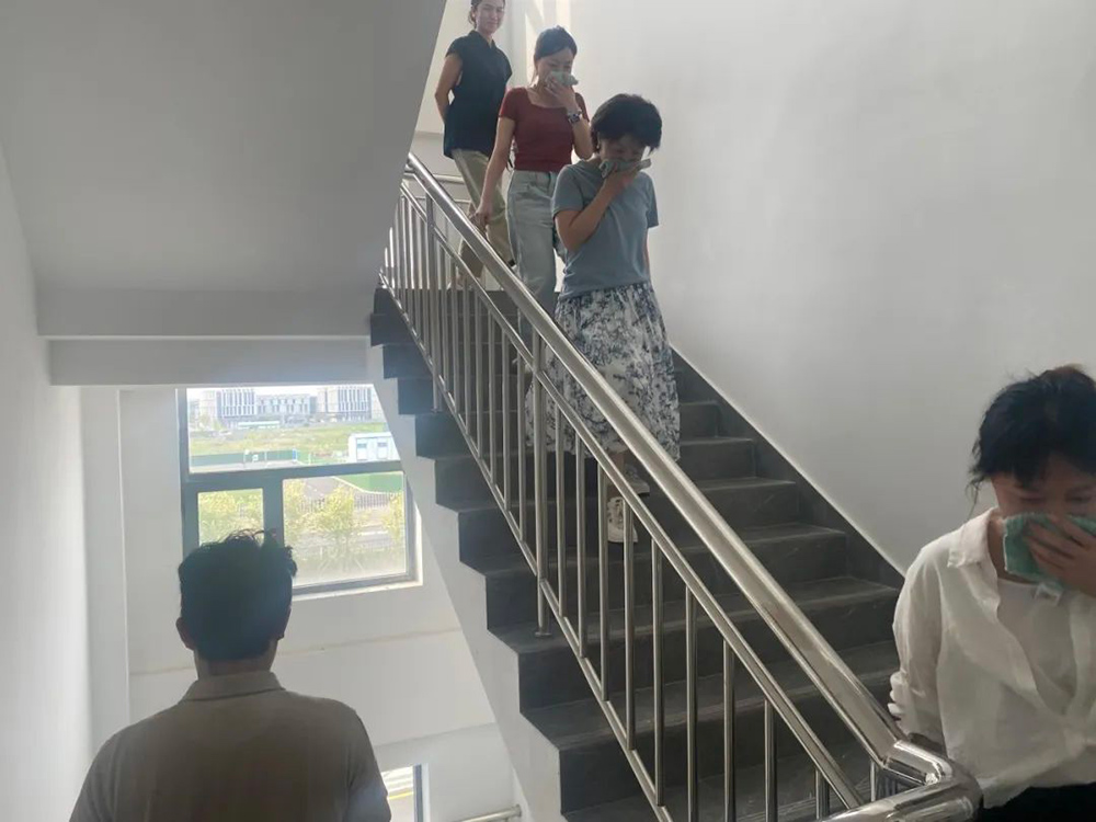 此次演練模擬辦公區(qū)域突發(fā)火災場景,重點圍繞人員疏散、初期滅火和設備實操等環(huán)節(jié)展開。15時30分,綜合樓消防警報驟響,消防卷簾自動落下,應急照明亮起,整個綜合樓瞬間進入模擬火場狀態(tài)。在消防總指揮和消防片長、樓長的指組織下,樓內(nèi)全體人員根據(jù)應急廣播指引,沿預定路線迅速有序撤離至室外集結(jié)點,與此同時,安保人員第一時間撥打119報警電話,微型消防站迅速啟動消防設施,開展火場控制和初期滅火等工作。最終,所有人員安全撤離。